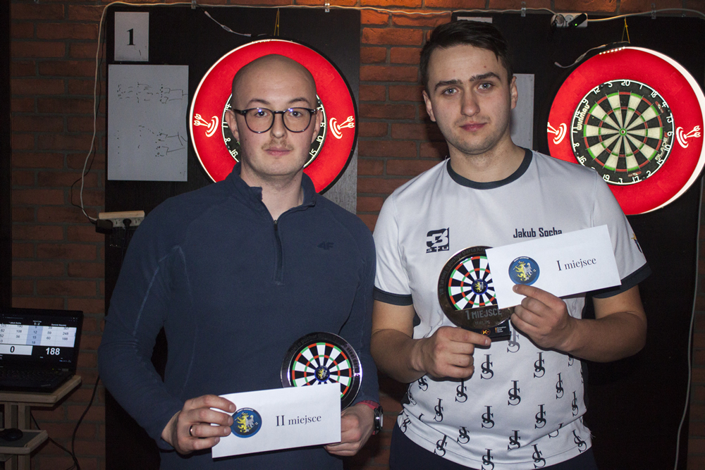 Pierwszy mecz półfinałowy to pewna wygrana Jakuba Sochy nad Damianem Jurusiem. Damian zdołał ugrać tylko jednego lega, a Jakub potwierdził, że od dłuższego czasu należy do ścisłej podkarpackiej czołówki darta. Drugi półfinał to pełne, siedmiolegowe starcie Dominika Niepokoja i Jakuba Sobolewskiego. Pojedynek wygrał Dominik, skutecznie rewanżując się Jakubowi za baraże do 3. Ligi KLSD. W finale Jakub już na samym początku narzucił tempo, wygrywając pierwsze trzy legi. Dominik miał swoje szanse i zdołał odpowiedzieć dwoma legami, ale to tylko zmobilizowało Kubę. Wygrał on dwie kolejne partie, zamykając mecz 18. lotką i zwyciężając w całym turnieju!